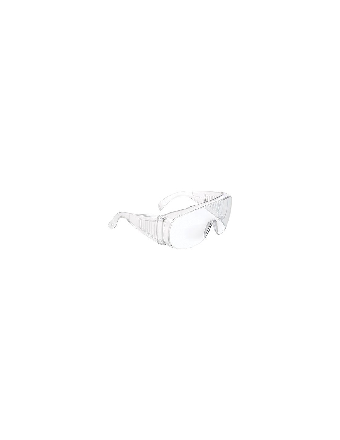 Con lenti in policarbonato trasparenti. Con stanghette fisse dotate di alette laterali anti appannamento....