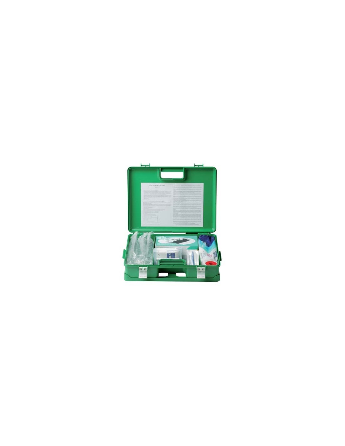 In polipropilene, dotata di supporto integrato per attacco a parete e di chiusura con clip a scatto. Contenuto conforme al D.Lgs. n. 81/2008 - All. 2 D.M. 388/2003 Gruppo C per aziende o unit... produttive con meno di tre lavoratori e per lavoratori che prestano la propria attivit... fuori dalla sede aziendale.