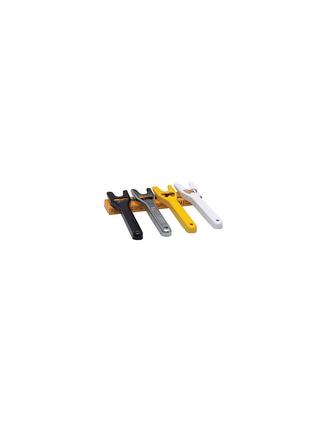 In acciaio verniciato. Adatto sia per i tappi corona che per i tappi a fungo in plastica o in sughero....