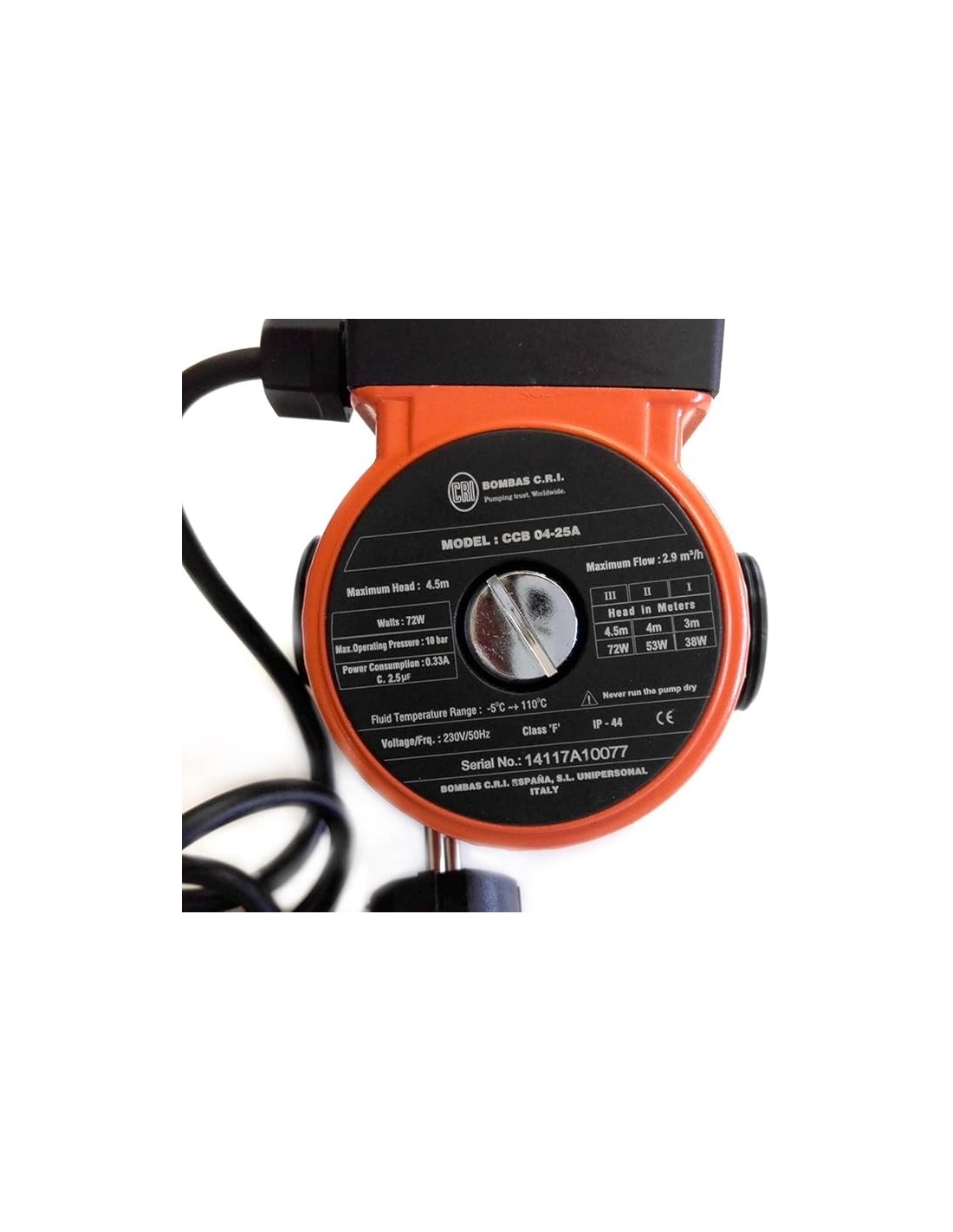 La pompa acqua CRI BOMBAS è un potente circolatore di acqua per il riscaldamento, ideale per caldaie e stufe a pellet. Disponibile in colore arancione, questa pompa acqua è realizzata in ghisa, acciaio inossidabile o polipropilene e offre 3 velocità di scelta. Con una potenza di 25/60-130 watt, questa pompa acqua è un prodotto industriale di alta qualità che garantisce un'efficace circolazione dell'acqua nel tuo sistema di riscaldamento.