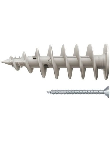 La geometria della punta consente un’installazione rapida, senza preforo, anche in presenza di intonaci duri. Permette un utilizzo flessibile perche è abbinabile con viti di diametro da Mm. 4,5 a 6,0. La testa del tassello, grazie alle dimensioni ridotte, rimane nascosta dietro all’oggetto fissato. Il sottotesta fresante consente una perfetta installazione a filo superficie. Massima sicurezza garantita in quanto il prodotto e realizzato in plastica rinforzata con fibra di vetro.
