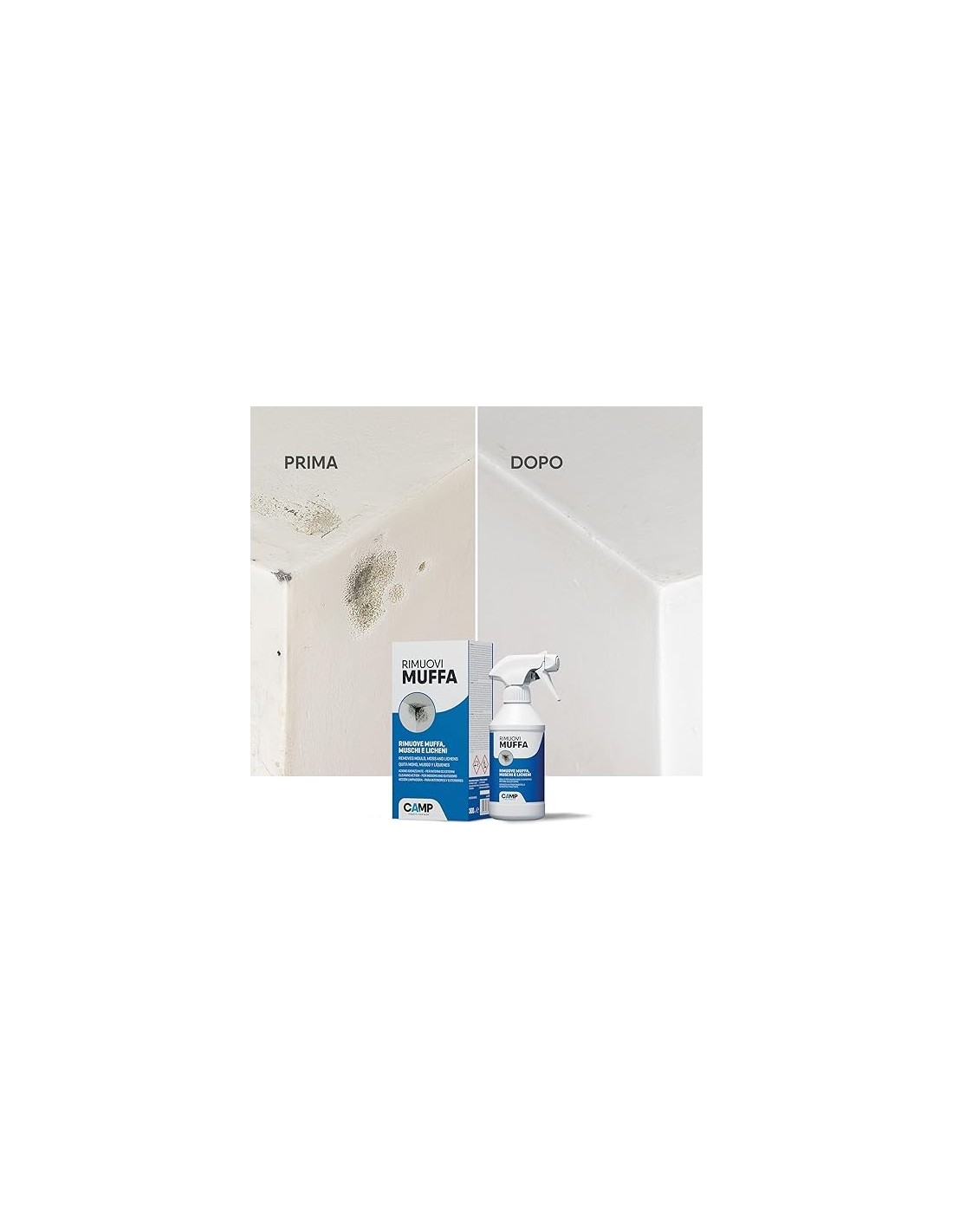 - MODO D'USO: Nebulizzare il Rimuovi Muffa sulle superfici colpite da muffa. Lasciare agire per 5-10 minuti, risciacquare e rimuovere i residui con una spugna o un panno. Per prevenire la ricomparsa, raccomandiamo di applicare il Muffa Control Risanante una volta che la superficie risulta asciutta