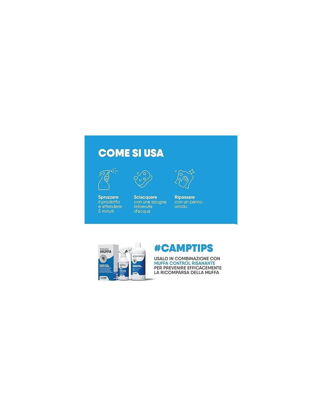 - CAMP, PASSIONE E INNOVAZIONE AL SERVIZIO DELLA QUALITÀ: Camp nasce dall'unione tra passione per la chimica e competenze consolidate, con una produzione 100% Made in Italy. Ogni fase, dalla selezione delle materie prime al confezionamento, è curata nei nostri stabilimenti per garantirti il massimo controllo della qualità e rispondere alle tue esigenze