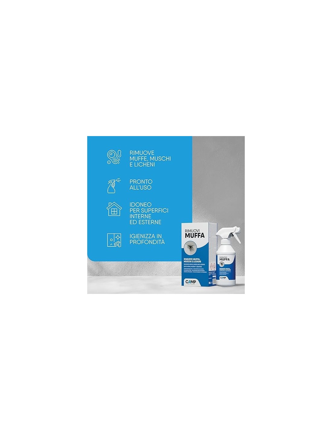 RIMUOVI MUFFA IGIENIZZANTE CAMP SPRAY 750 ML. PER INTERNI ED ESTERNI