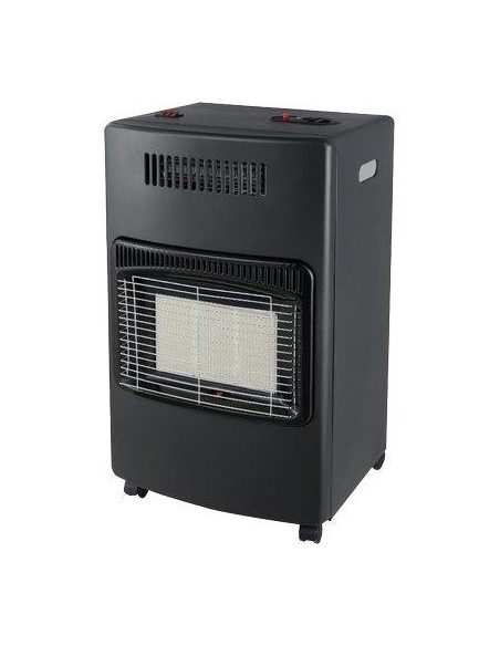 In acciaio verniciato di colore nero. Con bruciatore ad infrarossi ad alto rendimento. Elementi ceramici ad alta efficienza. Sistema ODS. Valvola antiribaltamento. Per ambienti da Mq. 20 a 100 circa. Accensione piezoelettrica. Con ruote. Vano per bombola da Kg. 15. Consumo gas massimo Gr/h. 305. Dotata di ventilatore 800/1600W per una pi... rapida diffusione del calore. La stufa ... conforme alle direttive e regolamenti CE. Peso: Kg. 10.