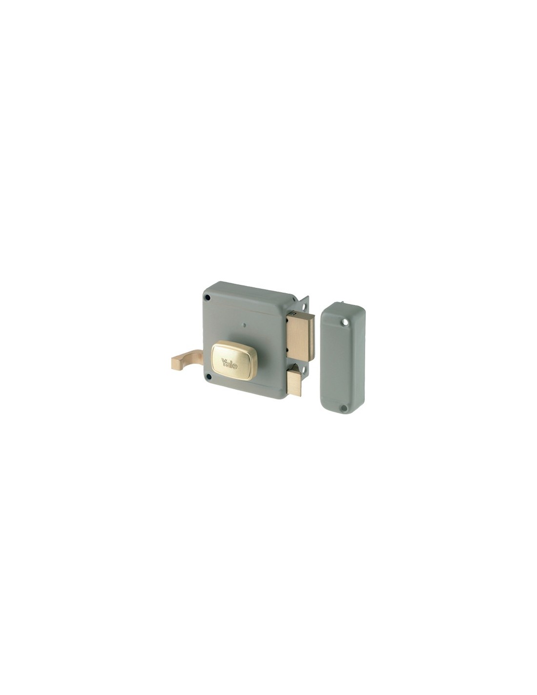 Con cilindro esterno staccato. Scrocco azionato dall'esterno mediante chiave e dall'interno mediante tirante. Pomolo interno. Chiusura a catenaccio a 2 mandate azionato mediante pomolo dall'interno e chiave dall'esterno. Scatola Mm. 80x85. Bocchetta Mm. 32x85. In acciaio verniciato. In dotazione: 3 chiavi piatte e 1 bocchetta.