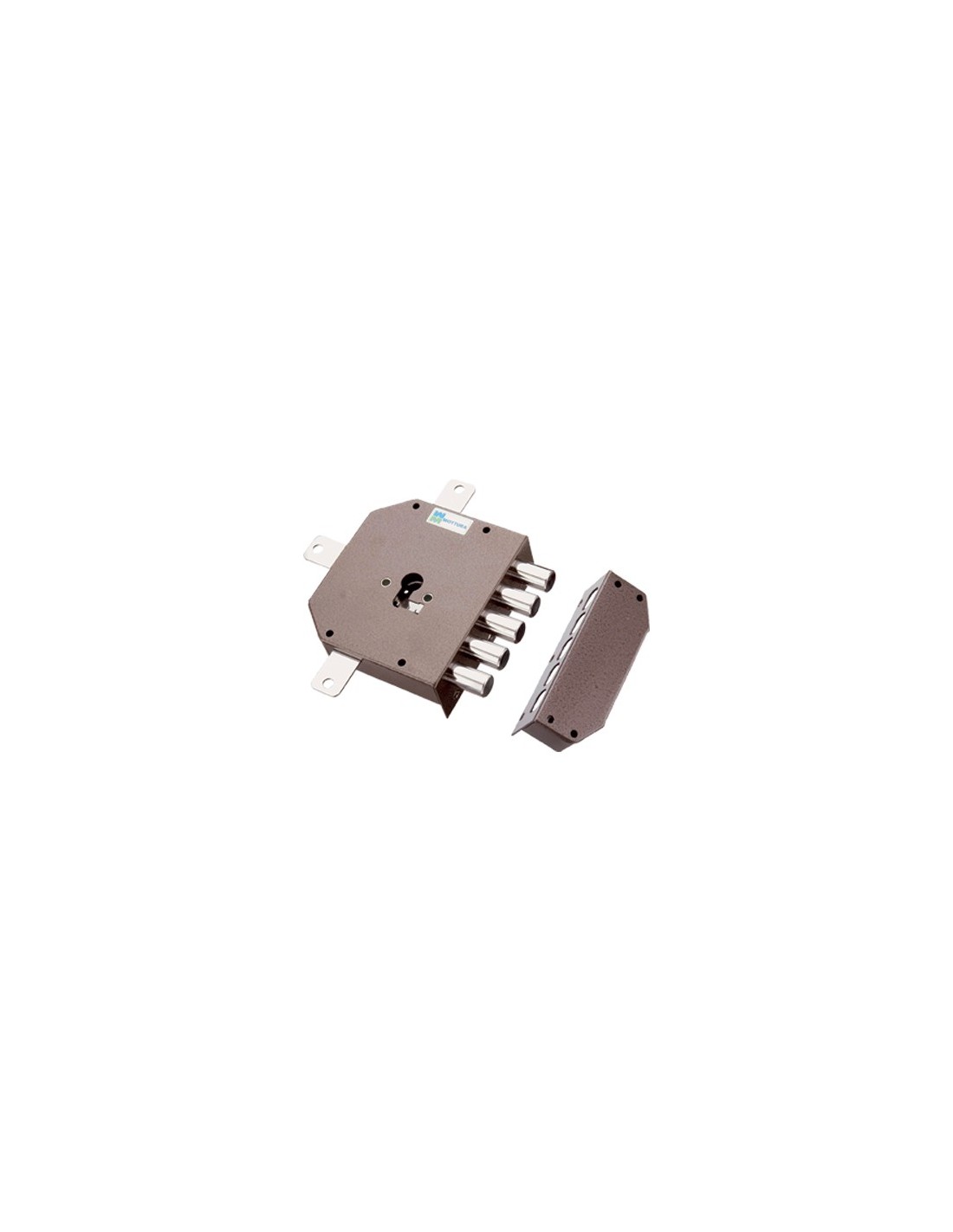 Per cilindro sagomato. Chiusura quintuplice con catenaccio a 5 pistoni e 2 mandate, corsa Mm. 29, predisposizione per fissaggio aste, corsa Mm. 17, e...