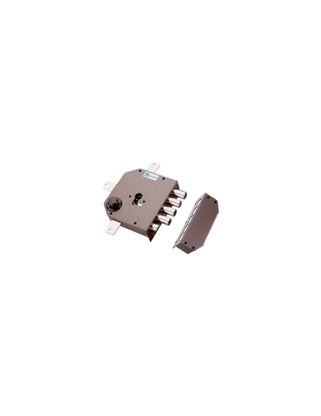 Per cilindro sagomato. Scrocco. Chiusura quintuplice con catenaccio a 4 pistoni e 2 mandate, corsa Mm. 29, predisposizione per fissaggio aste, corsa ...