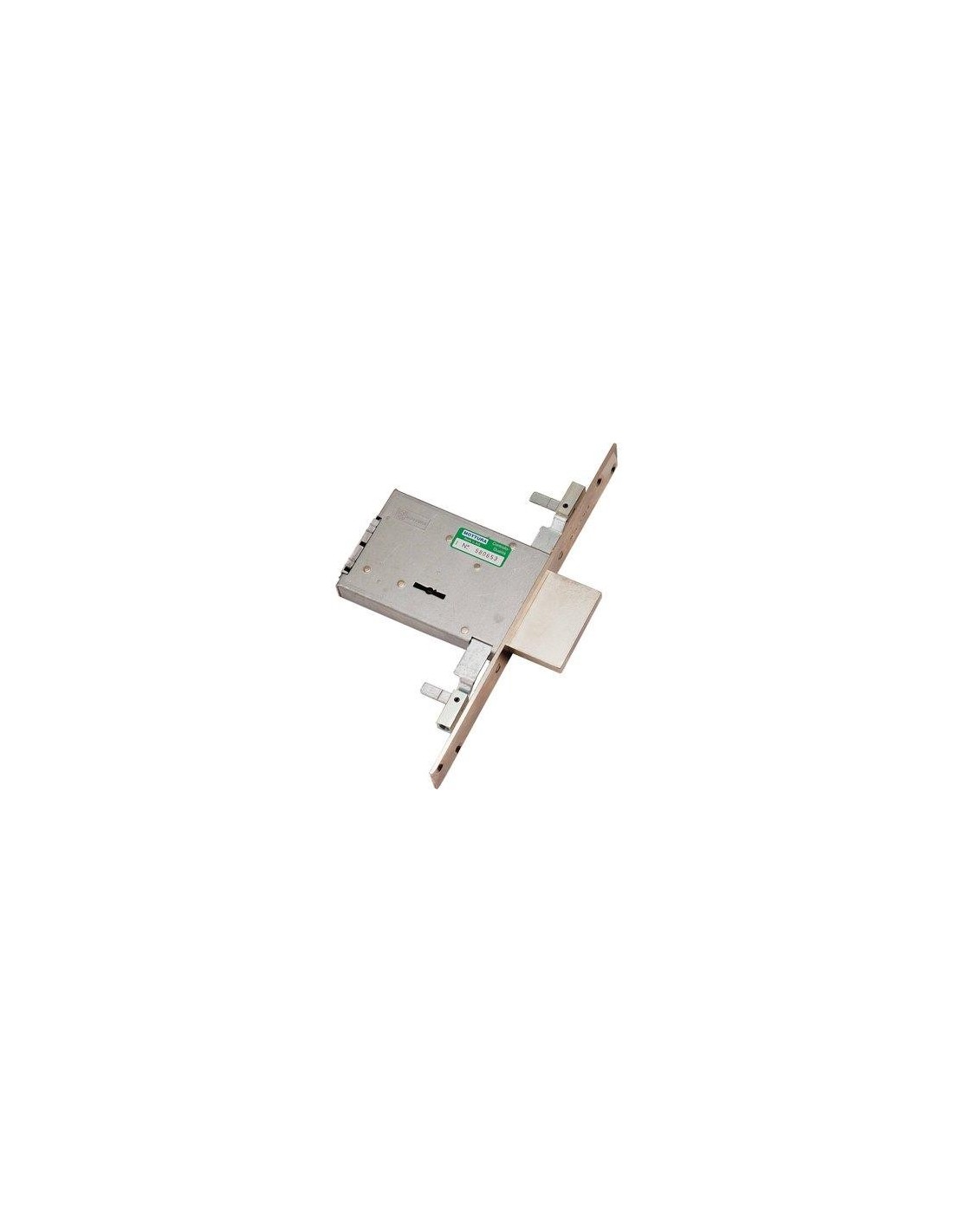 A doppia mappa. Chiusura triplice, con catenaccio a 4 mandate, corsa Mm. 36, boccole filettate M8 per il fissaggio aste, corsa asta Mm. 20. Borchia interna in acciaio. Frontale in acciaio zincato con bordo quadro da Mm. 25x260. Altezza scatola Mm. 80. In dotazione: 2 chiavi.