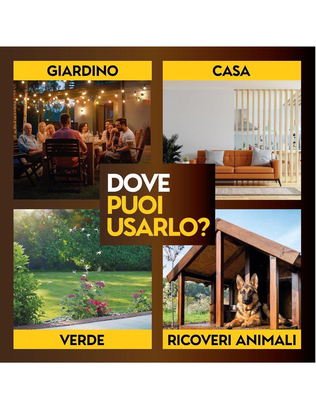 【NUOVA FORMULAZIONE 2024】 Antizanzare giardino di Albagarden è un potente insetticida, larvicida e acaricida con azione rapida e abbattente studiata per il contrasto di tutti gli insetti volanti e striscianti compresi i dengue. Azione disinfestante per ambienti domestici, ambienti professionali e ambienti frequentati da animali. Dimentica l'uso di racchette elettriche, ricariche anti zanzare, antimosche, cipermetrina, vaporizzatore, dispositivo per disinfestazione, trappole elettriche ecc.